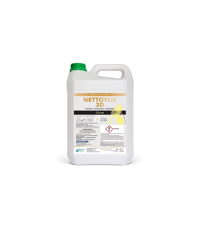 Détergent désinfectant surodorant Nettoyor 3D Netflore, Citron, 5 litres - HYGIENE ET NATURE